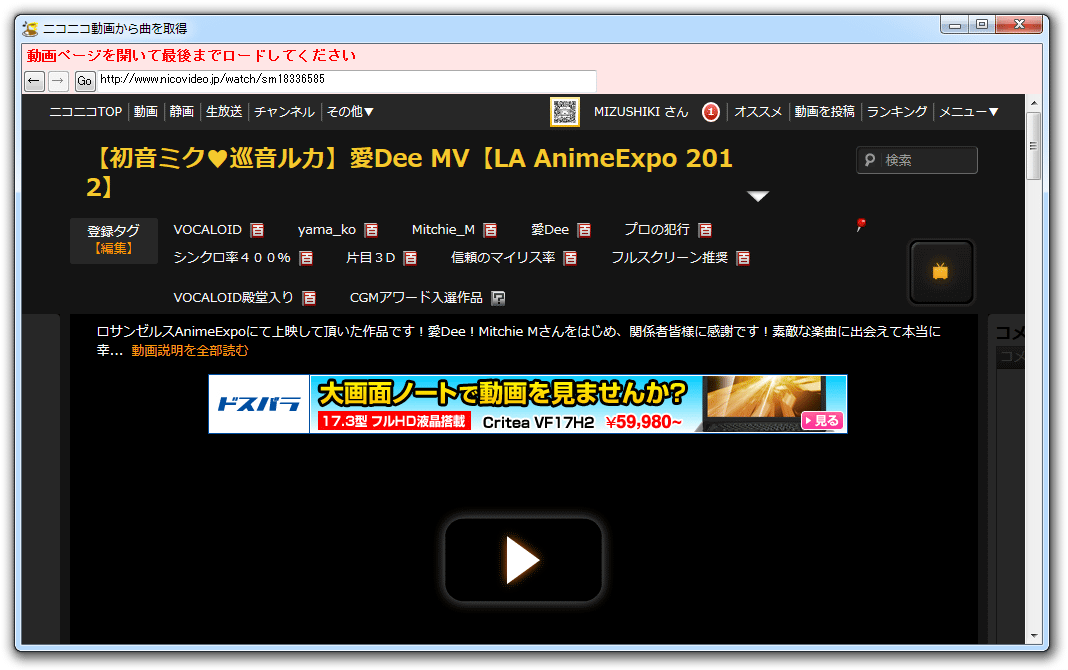 1. ニコカラにしたい動画から音声を取得