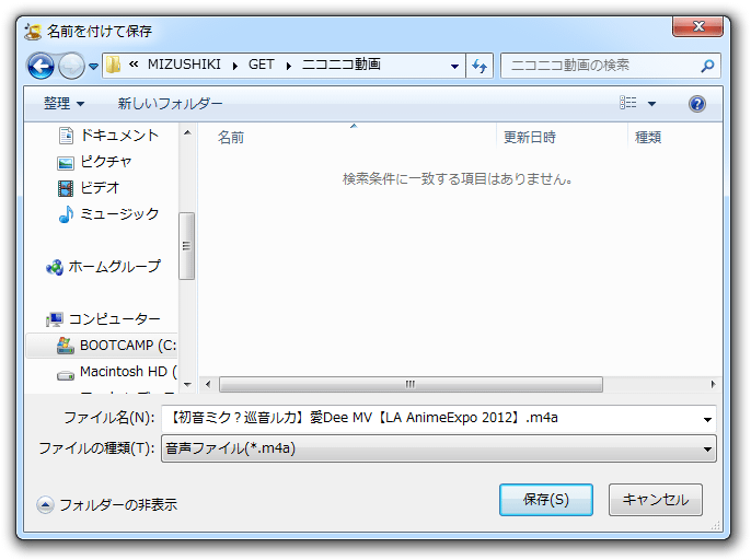 (4) 最後までロードすると保存ダイアログが開くので音声ファイルを保存。