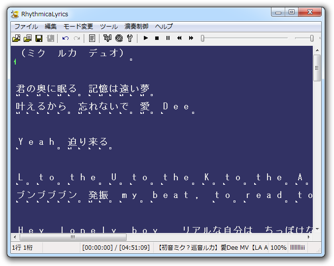 (1) RhythmicaLyricsを起動。