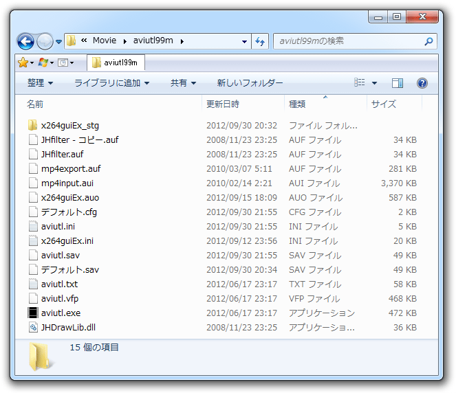(3) aviutlの準備。 aviutlと同じフォルダに以下のファイル/フォルダを置く。