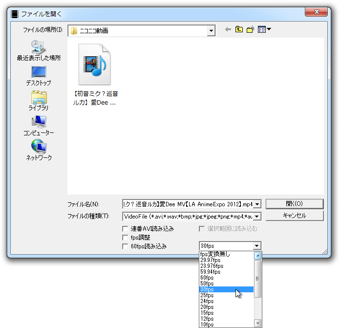 女医ハックフィルタがフレームレート情報が上手く取れないことがあるみたいなので[30fps]で強制的に読みこむようにする。