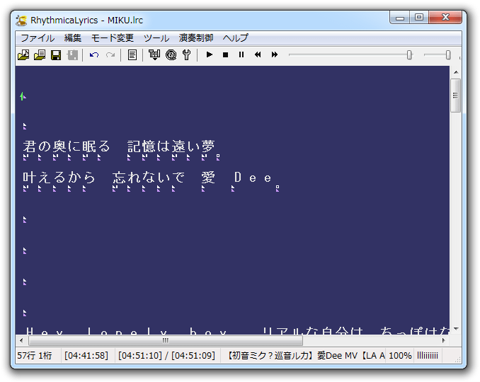 (2) 歌詞を取得。 ボーカロイドの曲なら初音ミクWikiから。 [ファイル>+歌詞検索ソフトで歌詞を取得>Googleのサイト内検索で取得]