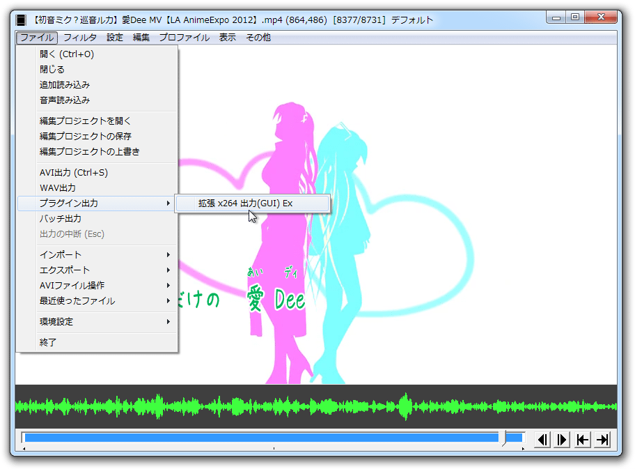 動画の出力の仕方はニコカラ作成(女医ハック版) や 他のサイトを参考にしてください。