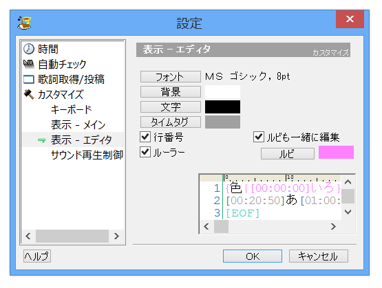 ・[ツール>設定>カスタマイズ>表示 - エディタ>「ルビも一緒に編集」にチェック]